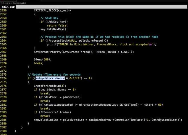 通过以上的证据,我们大致可以理解中本聪挖矿行为具有特性的事实,那么为什么他在挖矿时的Extranonce值具有固定的特征呢?我们找到了早期的比特币发布在2009的9月16日版本为0.1.5的代码,来寻找线索。