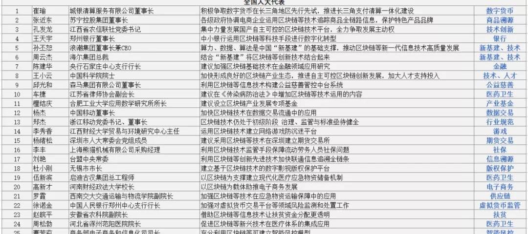 2020年全国两会于5月28日下午正式闭幕,全国两会圆满完成各项议程。除了大家都比较关注的就业、民生等话题外,区块链也成为这次两会中很多人关注的一个话题。去年“10·24讲话”后,区块链正式上升为国家战略,为区块链技术和行业的发展注入了极大的动力和信心。而这次两会,是区块链被“正名”后的首个全国两会,区块链一词也毫无意外的成为两会中的一个热门话题。实际上,在两会召开前夕,就已经有接近20位全国人大代表、政协委员提出了区块链相关的议案,九三学社、民建、农工党等民主党派的提案中也提到了区块链。据天天链讯不完全统计,本次全国两会期间,共有53位全国人大代表、全国政协委员提交了关于区块链的相关议案,其中既有政府官员、企业高管,也有行业专家、基层代表。53位代表、委员的区块链议案中,既有从行业产业的宏观角度出发建议制定区块链法、设立区块链专项基金等的议案,也有从具体落地应用出发建议加强区块链在扶贫、公益慈善、电子商务等领域应用的议案,还有建议加强技术创新,建立自主可控的区块链平台的议案。