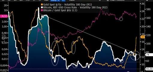 编者按:本文来自碳链价值,作者:BloombergIntelligence高级商品策略师MikeMcGlone,编译:白夜,Odaily星球日报经授权转载。近期,彭博发布一份报告《比特币成熟跳跃》,报告称,比特币正在为一场大规模牛市做准备。在报告中,作者详细阐述了比特币与标普500指数、黄金、零利率和负利率之间的相关性。报告称,股市震荡加速了比特币向「数字黄金」的过渡。我们认为,2020年将能判断出比特币究竟能否从风险投机资产转变为「数字黄金」。从波动性的角度来看,比特币波动性似乎有所下降,而股市波动性却开始上涨,这样的市场反应也会让更多人将资金转移到加密资产上。报告表示,比特币与黄金之间相关性最初因股市下跌而拉低,但现在,随着全球央行实施了前所未有的量化宽松政策,比特币与黄金关联度创下历史新高。比特币和股票关联度降低,和黄金关联度上升。我们认为,当标准普尔500指数迅速下降时,人们会开始关注其他风险资产,此时比特币价格基础会得到进一步巩固,而比特币与黄金关联度也会有所增长。我们的图表描绘了比特币与黄金之间52周关联度走势,你会发现当前比特币与黄金关联度得到了自2010年以来的最高水平。比特币与黄金关联度是比特币与股票关联度的两倍,过去比特币是一种投机升值手段,而现在已经转型成为类似于黄金的价值存储机制,成熟度正在得到进一步提升。以下为报告全文:彭博加密展望在金融危机环境下,比特币愈发成熟股市震荡加速比特币向“数字黄金”过渡期货“驯服”比特币,并促其变成黄金的数字版本比特币和黄金的关联度在增强新冠病疫情导致比特币一些链上指标走强新冠病疫情可能让Libra重获新生,也激发了数字美元概念在金融危机下,比特币愈发成熟(BloombergIntelligence)——我们认为,当前股市震荡拖累比特币只是暂时性的,最终结果可能会让人联想起2008年金融危机之后的黄金。比特币是第一代加密货币,2009年问世,而且表现相对较好,尽管按波动率加权计算其风险是标准普尔500指数的五倍,但是在2020年跌幅却只有标准普尔500指数的四分之一。对于一个创立只有10年时间的资产来说,比特币7*24小时价格透明、以及没有限制、熔断或第三方监督的特点使其获得了不俗成就。2020年,是比特币向黄金等准货币过渡的关键一年,我们希望比特币可以顺利通过这次考验。比特币与传统股市有所不同,但是却和黄金有些类似,虽然在这段时间内受到了一定冲击,但在全球央行实施史无前例的全球量化宽松货币刺激政策下,比特币基础正变得越来越稳固,采用率也有较大提升。与股市共有的风险