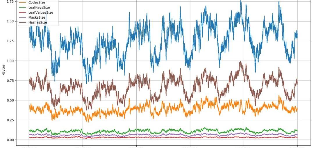 来自github的数据。图表显示了50000个近期主网区块的无状态区块见证组成。这些值是以128个块为窗口的移动平均值。无需发送完整代码