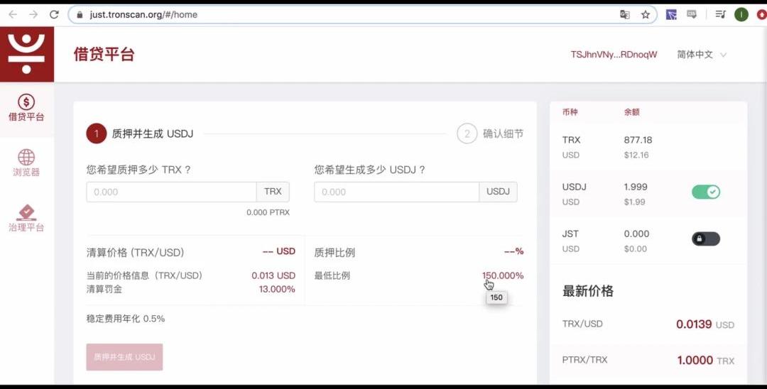 回归后的孙宇晨在微博一遍遍为「JUST」宣传打新。看似集合了IEO、稳定币、DeFi等多种概念,但「JUST」并不是来和USDT争夺稳定币市场份额的。在官方的介绍中,「JUST」是一个基于波场TRON的稳定币借贷平台,通过智能合约为所有人提供去中心化稳定币USDJ。孙宇晨也在公开平台上进一步解析:“USDJ和JST的本质不是在稳定币市场上和其他稳定币竞争,而是要补足波场生态缺乏去中心化稳定币的关键一环。”「JUST」的前身是一个在波场上开发的名为「Djed」的平台,最早在今年1月份时就曾被孙宇晨在自己的社交媒体中预告过。只是,「Djed」推出后不久,很快就被抄袭MakerDAO的质疑声淹没。“Djed就是MakerDAO最初单抵押Sai系统的复制品。”人们质疑,Djed平台复制了MakerDAO中的许多设计,比如MakerDAO的单一资产抵押担保、抵押债仓、稳定费、双币模式、社区治理、清算机制等设计。到了2020年4月4日,「Djed」被升级成了「JUST」。Odaily星球日报通过查阅「JUST」的白皮书和官网实操后发现,「JUST」的玩法和概念可以说与以太坊上最大的抵押借贷平台「MakerDAO」几乎无差。「JUST」和「MakerDAO」一样设计了双代币机制,从官网页面点进去,可以看到「JUST」产品包含借贷平台、浏览器和治理平台。「JUST」产品使用逻辑是,用户在「JUST」上超额质押TRX可借出稳定币USDJ,「JUST」CDP设计的最低质押率为150%,用户借款产生的稳定费以USDJ定价,但只能通过JST来偿还稳定费,在偿付完后,JST会被销毁并从流通中完全移除。