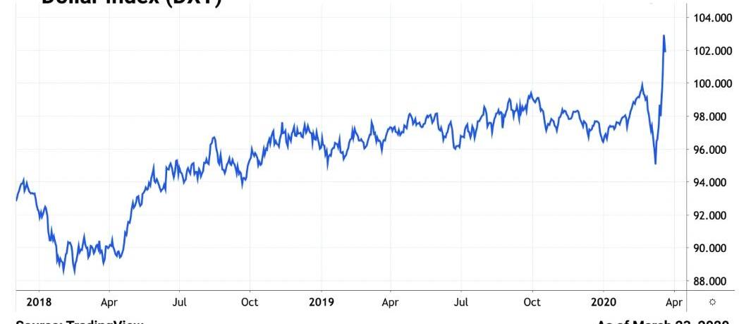 在受到稳定币受益于BTC波动性的典型对冲驱动的同时,可能还有宏观经济力量在推动需求。据《华尔街日报》3月份的一篇文章《世界对美元的渴望》称,全球投资者正在抛售资产,并花大价钱将当地货币换成美元。在金融危机期间,美元的需求在"逃亡到安全地带"的情况下历来都会增加。作为美元需求的代表,DXY美元指数最近飙升至多年来的高点。