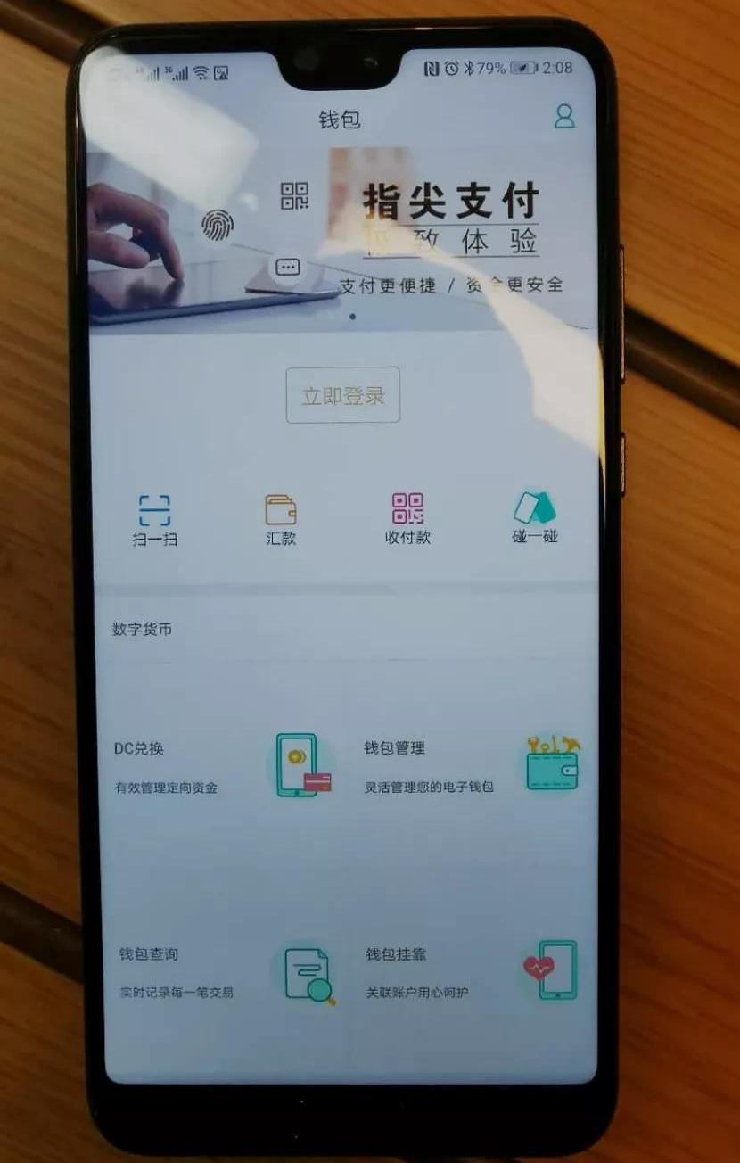 农行DCEP钱包测试版APP主界面打开DCEP钱包,在使用界面可以看到四个与支付相关的基本功能,分别是“扫一扫”“汇款”“收付款”“碰一碰”。前三个功能,在支付宝和微信支付中很常见。第四个功能也不罕见。它指的是将手机靠近NFC收款设备完成支付。2018年,银联就推出了云闪付APP“碰一碰”付款,HuaweiPay也有这个功能。除了基础的支付功能外,DCEP钱包还有“数字货币”一栏,下设四个功能选项。它们分别是“DC兑换”“钱包管理”“钱包查询”和“钱包挂靠”。其中的DC兑换功能,意味着可以将银行卡里的钱,换成数字货币,存储在钱包中。