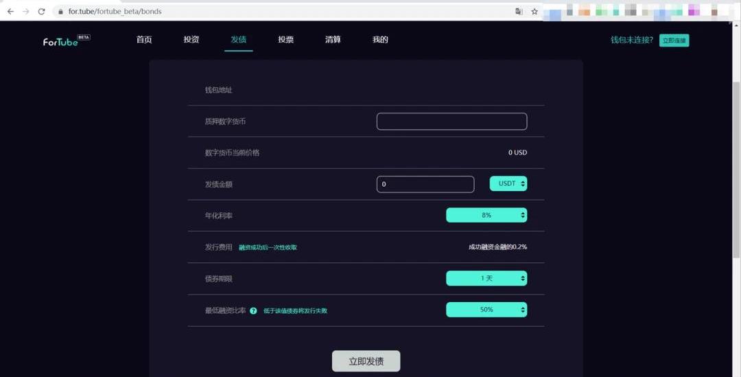在这个平台上,大家可以利用数字货币发行自己的债券,ForTube现在面向的用户群体主要有两类,一类是去中心化的项目方,也就是数字货币的项目方,他们可以用自己的token发行债券,给他们一个融资的新工具,另一类是关心Defi的用户,我们为他们提供提供包括投资、发债、投票的渠道。