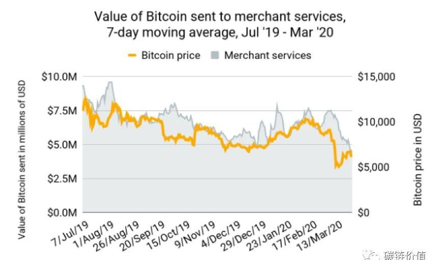 编者按:本文来自碳链价值,编译:五十度灰,Odaily星球日报经授权转载。一般来说,与其他服务相比,暗网市场活动并不太会受到市场活动和价格波动的影响,因为不管比特币价格多少,贩总是要去购买,其他犯罪分子对数据、和支也有需求。但是,这种相关性在新冠病疫情期间发生逆转,当比特币价格大幅下跌之后,暗网市场活动的下降幅度远远超出我们预期。从3月9日这周开始,新冠病疫情开始在西方世界肆虐,随之而来便是经济受到重创,比特币、股票市场、以及其他传统资产类别价格纷纷暴跌。不过,就在这段动荡不安的时间里,一些加密货币交易者却蠢蠢欲动,希望在市场剧烈波动中获利,流入交易所的比特币数量比以往任何时候都要多。根据加密货币交易所Coinbase披露的交易数据显示,在今年三月份市场崩溃期间,购买最多比特币的居然不是机构投资者,而是散户。然而交易所活动只能告诉我们投资者们在做什么,但是对于那些使用比特币“实打实”购买商品和服务的人来说,情况又如何呢?在此,我们将分析三种服务类别:商户服务、服务和暗网平台交易模式变化,并探寻新冠病疫情会给比特币消费者带来什么样的影响。新冠病疫情似乎给某些服务类别、以及比特币使用方式带来了巨大变化,也说明我们正处于前所未有的危机之中。比特币使用率虽有所下降,但还不是预期的那么严重