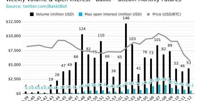 来源:Dapptotal据Dapptotal数据显示,3月23日去中心化交易所总的活跃用户数2820,相比于19年6月26日5350活跃用户的峰值下降47.3%,活跃人数较上周有所下降。。Bakkt交易量统计