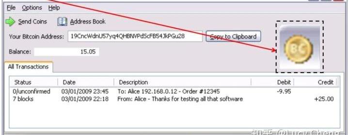 比特币软件里面显示了BTC的初始Logo这个金币形状的logo是中本聪在上线比特币客户端之后一并公布的。虽然一年之后他就把“BC”抛弃掉,换成了沿用至今的“B+II”;但整体设计上还是一枚金币。