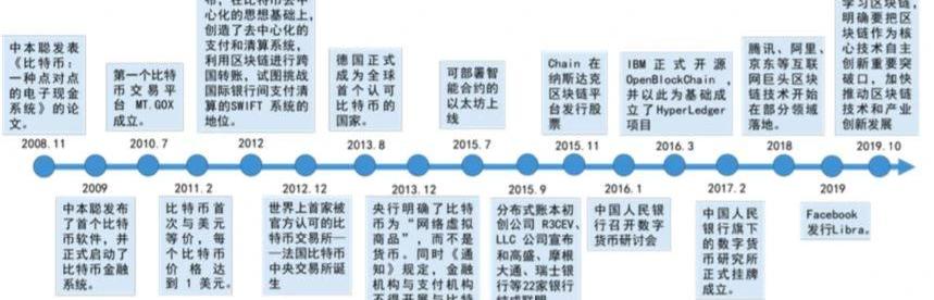 IDC将区块链定义为记录信息和数据的分布式数字账本,该账本存储于对等网络的多个参与者之间,参与者可以使用加密签名将新的交易添加到现有交易链中,形成安全、连续、不变的链式数据结构;从数据的角度来看,区块链是一种不可能被更改的分布式数据。传统的分布式数据库仅由一个中心服务器节点对数据进行维护,其他节点存储的只是数据的备份。区块链的「分布式」不仅体现为数据备份存储的分布式,也体现在数据记录的分布式,即由所有节点共同参与数据维护,单一节点的数据被篡改或被破坏不会对区块链所存储的数据产生影响,以此实现对数据的安全存储。因此区块链特征包含:分布式、多节点共识、公开透明和不可篡改。分布式:区块链系统内没有中心化的硬件设备和管理机构,各节点之间的权利和义务近乎均等,每个节点都能获得完整的数据拷贝,系统由多个节点共同维护。多节点共识:淘汰了中心化管理员来审批结算交易的角色,各个节点之间无需相互信任,通过共识机制对入链数据进行验证,数据内容和系统运作规则公开透明,节点之间通过技术手段自动实现信任关系。公开透明:通过共识机制,账本和商业规划可以被所有人审阅,并可利用时间戳机制对用户行为进行追溯,保证了系统的公开透明。不可篡改:区块链上的区块只能新增、不能被替换,交易可以通过新增区块的方式予以修改,但是区块记录将永久保留。区块链发展大事记