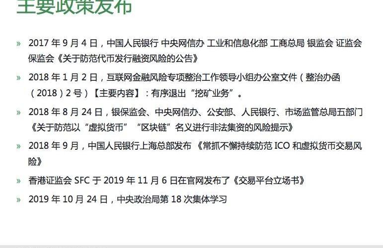 根据CoinMarketCap数据显示,市值前100的数字货币项目登陆交易平台主要集中在2017年和2018年,而2019年登陆交易平台的数字货币项目已经回到了2013年水平,项目发展缓慢,处于原地踏步阶段。而传统公司逐步发力,以互联网科技和金融公司为主,仅阿里巴巴一家申请的区块链专利数量达322件。「正规军」的入局将改变行业格局,会加速场景的开放和落地。在政策方面中共局集体学习区块链相关知识远超预期,但关于代币金融风险防范部分仍是处于禁止和强监管状态。