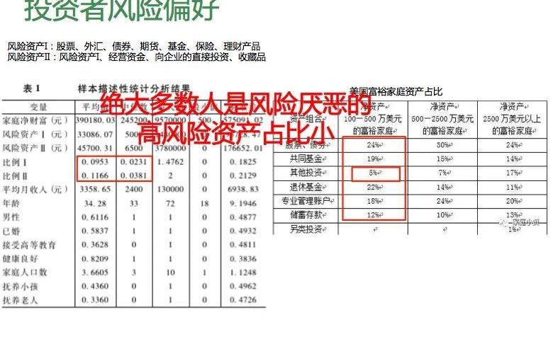 绝大部分投资者是属于风险厌恶型的,高风险资产占比小。