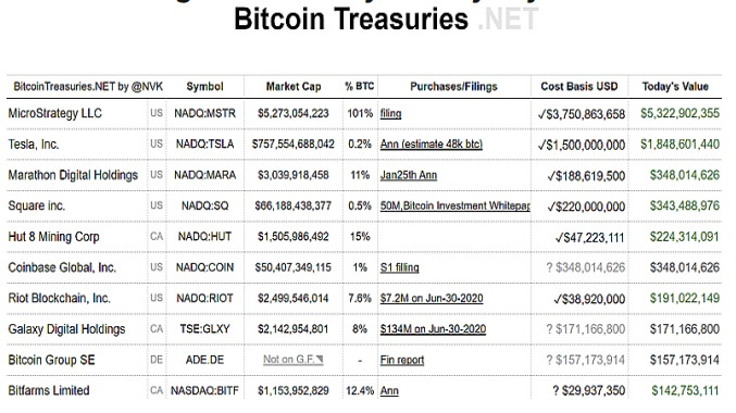 下图:越来越多上市公司将比特币纳入自己的投资组合中