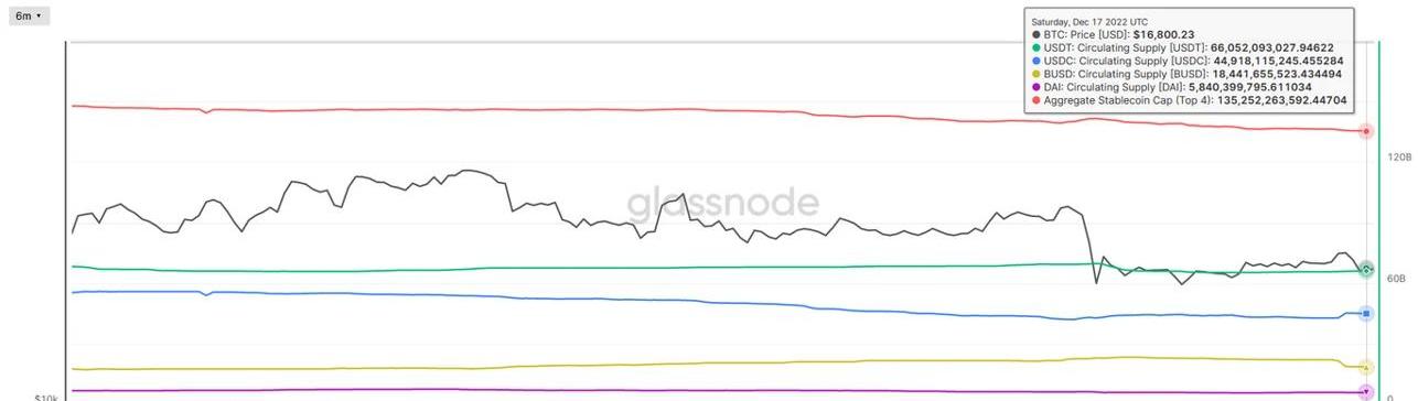 截止12月17日,前四大稳定币合计供应量约1352.52亿,较一周前的1364亿大幅减少约11.54亿。稳定币供应量连续五周下跌,资金呈现持续流出趋势,本周跌幅出现加速。