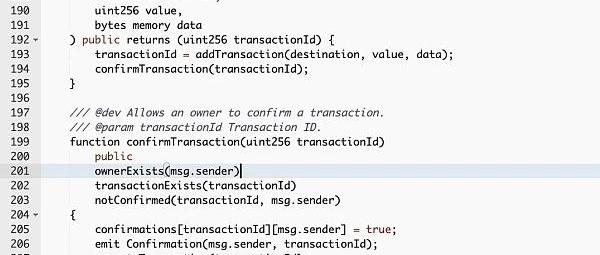 ③在接下来的攻击中,MultiSigWallet合约所有者的MultiSigWallet调用函数confirmTransaction,其中输入的交易ID为21106。
