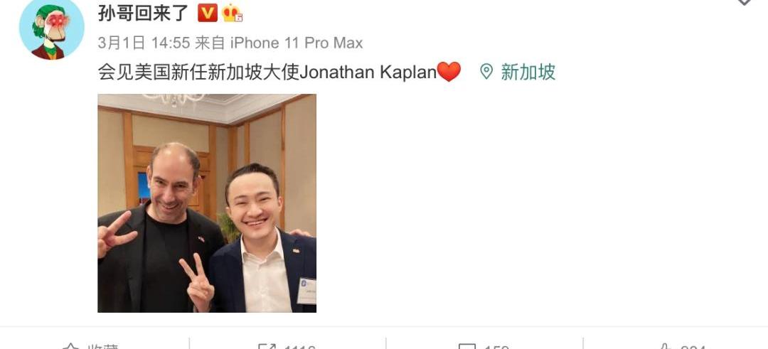 3月8日,孙哥还亲切会见了新加坡驻WTO大使TanHungSeng;3月1日,孙哥会见美国新任新加坡大使JonathanKaplan。