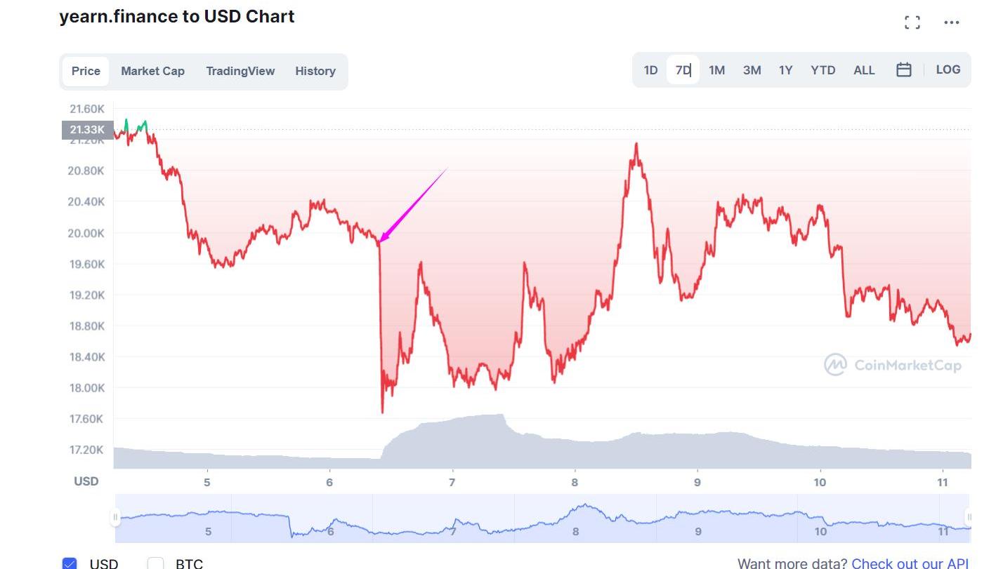 后来项目发行代币YFI,是AC的一个实验。公平启动,无预挖、无私募、无团队预留,这也成了很多项目发行代币借鉴的方式。在发行YFI之前,AC不断在推特中强调YFI没有任何价值,任何Yearn协议的使用者都能挖。谁曾想YFI从0元一路冲到9000多美金,一度超越当时的BTC币价。成为2020年DeFi项目最闪耀的项目!
