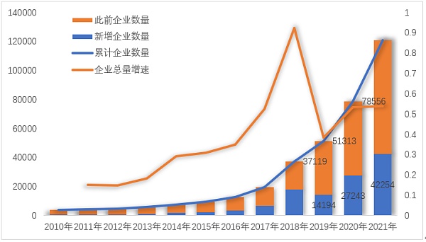 区块链相关企业数突破12.1万,2021年单年新增超4万家