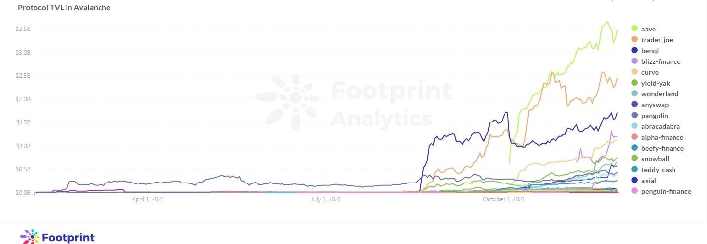 FootprintAnalytics:Avalanche上各协议TVL情况