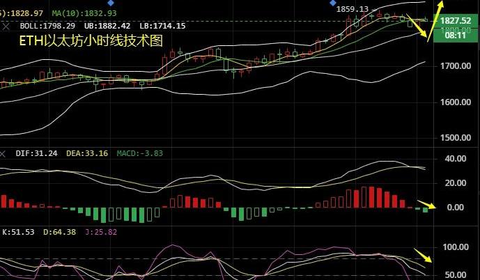以太坊:日线三连阳多头强势直接突破1600、1700、1800美元三大关口,整体的走势处于上行通道之中运行,下方均线MA5/MA10交金叉分别于1724、1610美元一带给与支撑,而上方则重点关注1880美元一带压力。短周期KDJ技术指标缓和运行,附图MACD上行动能放量,预计以太坊将保持震荡上行趋势。短线上以太坊和比特币走势一样,但是技术形态上以太坊伴有回调的迹象,重点关注1800美元支撑,下破继续下看,短线可关注比特币走势而定,交易上谈老师建议是回落做多。手上持有空单的朋友们,如果你们处于深套之中,一定要控制好风险,因为留给你们解套的机会不多了,这一波多头势必会割掉一批空头韭菜,所以风险永远是第一位。
