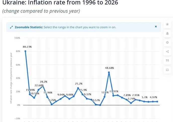 图片:1996年到2026年,乌克兰的通货膨胀率