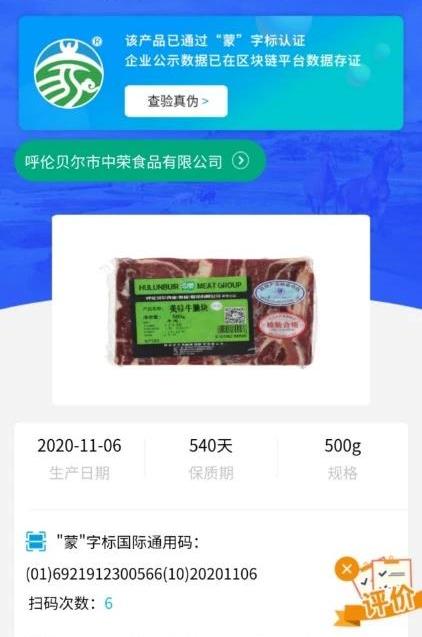 图为“蒙”字标呼伦贝尔牛肉质量码扫码页面