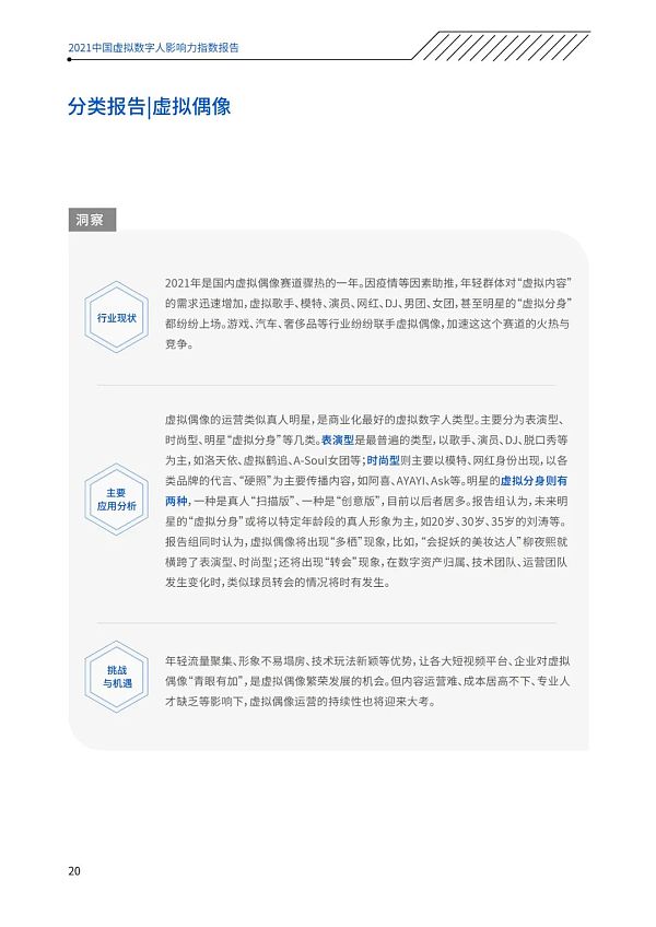 1月27日,中国传媒大学媒体融合与传播国家重点实验室(以下简称“国重实验室”)媒体大数据中心联合头号偶像(北京)数字科技有限公司共同发布《中国虚拟数字人影响力指数报告》(以下简称“报告”),国内首个“虚拟数字人影响力指数”亮相。