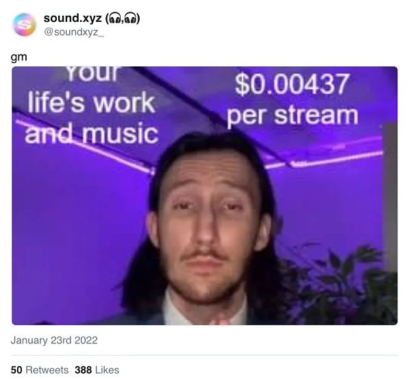 而我们终于开始看到这一趋势的展开。音乐NFT是NFT市场中一个正在崛起的子行业,因为web3音乐人赚的钱比任何流媒体平台都多得多。