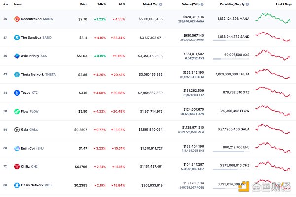 NFT总市值、市值排名前十项目 数据来源:coinmarketcap