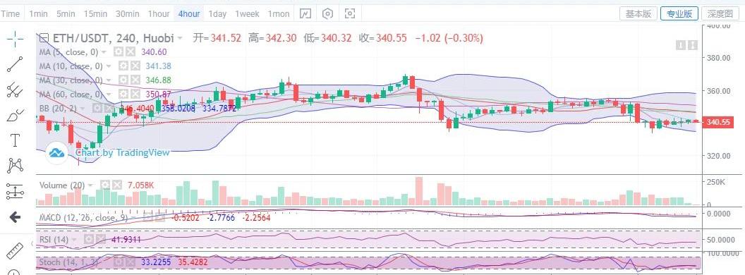 以太坊日内受大饼影响,行情波动也是不强,低点触及337位置后反弹,目前价格在340位置附近,多空双方接替发力,市场情绪还是较为萎靡,由此可见短期行情还是偏向震荡,所以操作上薪火建议区间内高空低多即可。上方阻力关注346-350,下方支撑关注333-330