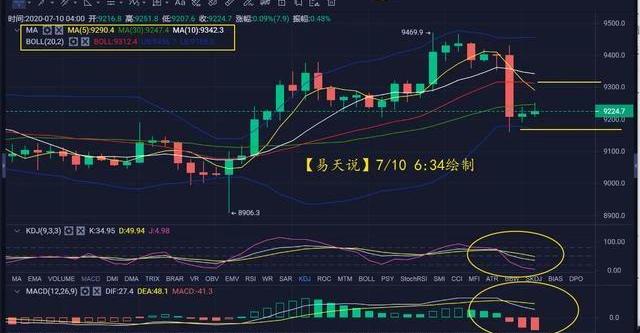 2020年7月10日,周五,清晨起床脑子昏昏沉沉的,显然还没有睡醒,每次遇到大行情,都睡得比较晚;睁开眼睛的第一件事情就是看看比特币的行情点位,看到行情盘整在9240附近,易天就放心了!