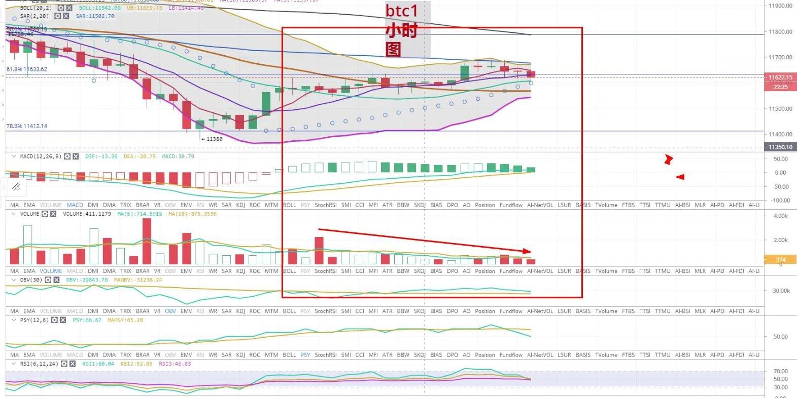 一波瀑布后,昨天行情迎来小幅度反弹,目前小时图上行情整体处于横盘阶段,市场上分化明显,涨跌参半,观望居多。目前可以说是暴风雨的前夜,是上行还是继续回落。