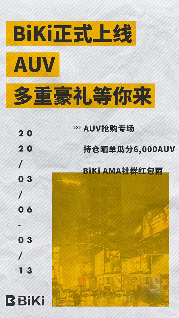 AUV作为全球消费产业“重塑者”,此次上线BiKi将伴随众多优质福利活动,一方面帮助AUV打响热度,另一面也为BiKi用户投资更多优质资产以及充分让利。