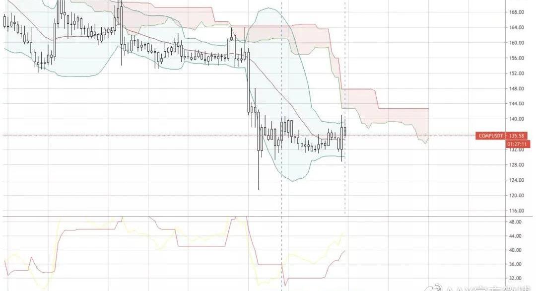 QQEMT4这个指标目前是看涨的。然而,如上图所示,COMP未能取得持有人希望的进展。市场分歧已经发生,这可能导致横盘之后向负面突破。