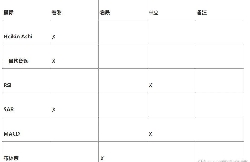 从上表可以看出,目前指标显示的结论也比较复杂。指标指向两个方向。如果现在加仓,风险很大,等待突破发生后再操作可以降低风险。突破也会改变指标指向,增加朝某一方向突破的力度。