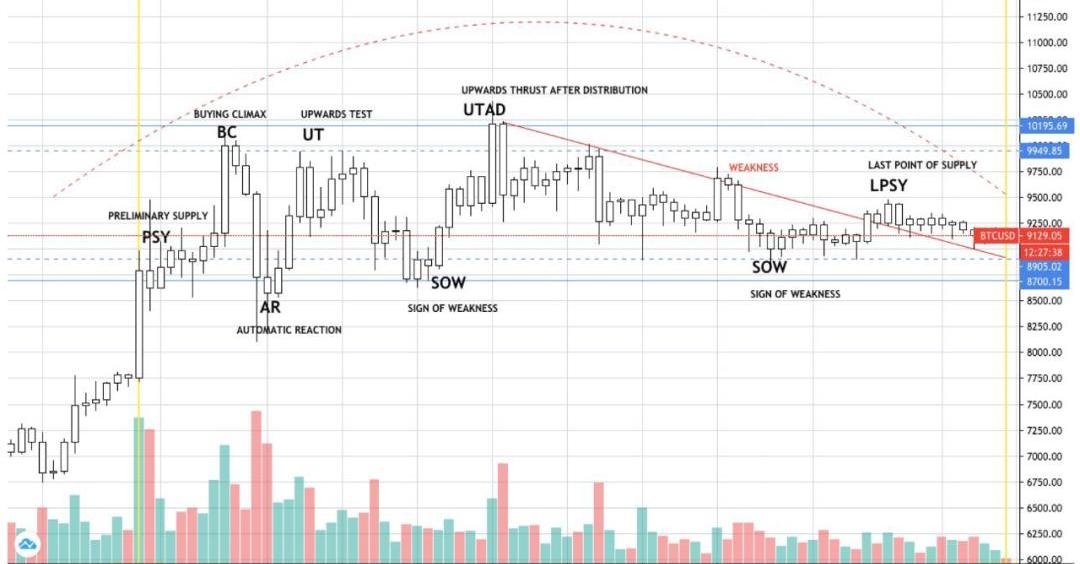 BTC的第二个目标价将是10250美元。如果这个价格被突破,那么Wyckoff分析就会失效。这将带来6.25%的收益。