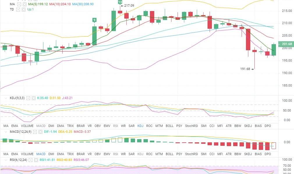 操作建议:202附近布局空单,止盈3个点止损2个点。