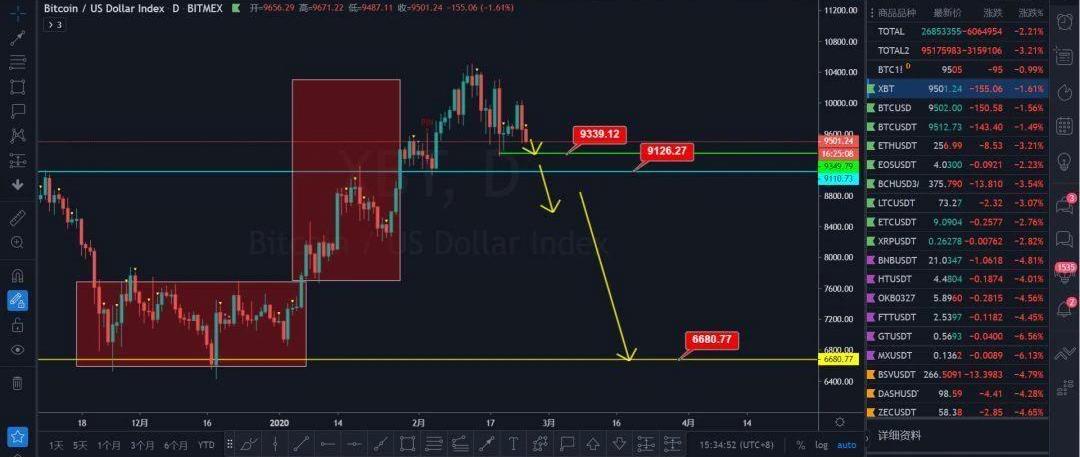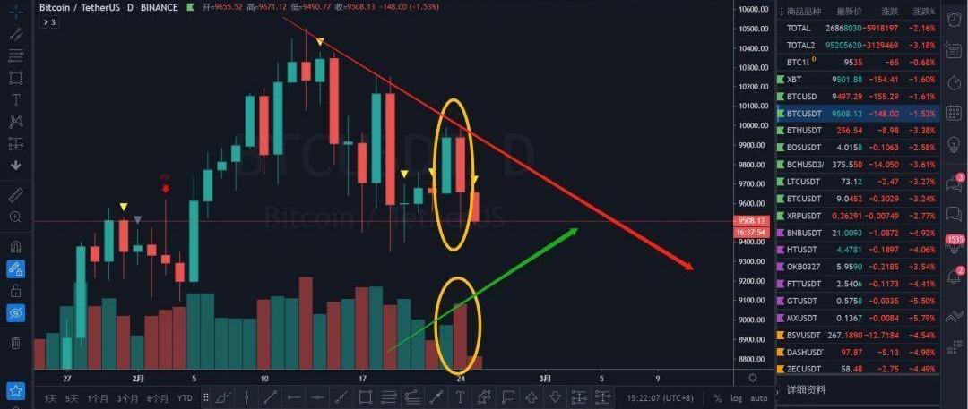 1小时级别价格在开盘后持续走低,9400附近预期仍然有小反弹,但我们清楚大级别是空头趋势,逆势抄底量力而行,反弹做空是主要思路,关键压力:9655、9811,关键支撑:9400、9100