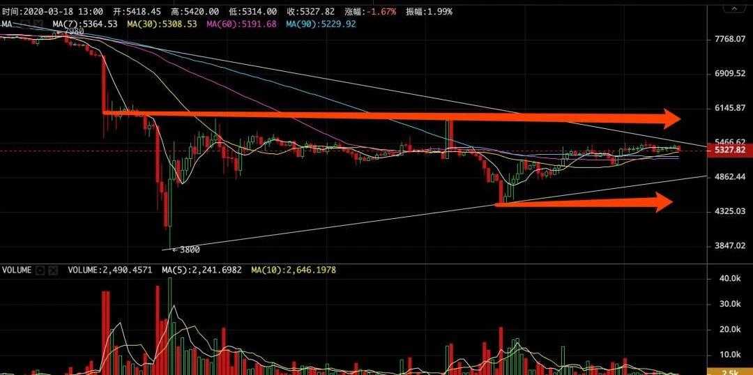 回到行情上,BTC仍处于三角形收敛形态,盘面缩量整理,虽说是反弹走势,但量能明显不足,短期内并没有出方向,继续观望为主。波段操作者可以以6000美金为区间压力,4500美金为区间支撑,小仓位低吸高抛。目前BTC所处的区间,在近一两年的历史走势中处于低点,可以小仓位的定投,但在整体形势没有明显好转前,梭哈仍不可取。