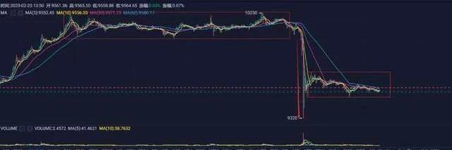 今早打开行情图便是这副情形,这不是4小时线,也不是1小时线,而是5分钟线,凌晨5点45分-5点50分5分钟内,BTC价格从9920跌倒9320,跌幅近600点,这几乎把恶意操控市场几个大字写在脑门上,透过短时间内快速形成的大阴线,仿佛也看到了行情图背后某些交易所扬起轻蔑的嘴角,在嘲弄着我们这些孜孜不倦分析盘面的投资者。
