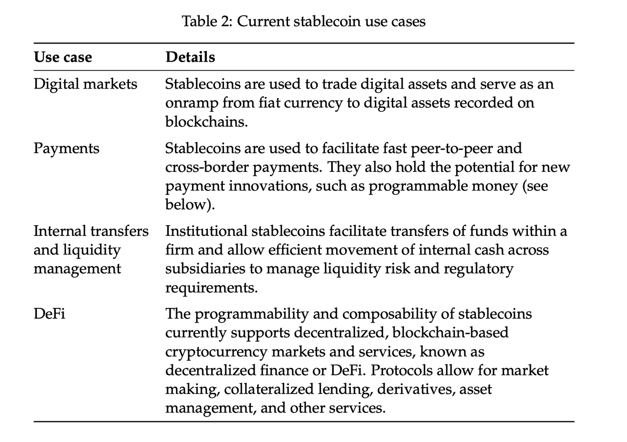 今年 2 月,美联储发布了一份最新的稳定币报告,认为稳定币拥有下一代创新潜力,并着重讨论了稳定币对银行系统和信用中介的潜在影响。