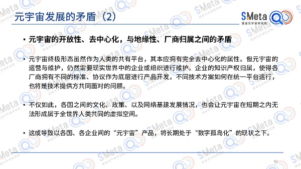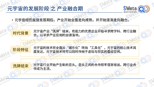 2021年是元宇宙“元年”,全球大型互联网企业纷纷下场元宇宙,随着行业监管逐渐完善与元宇宙的边界逐渐清晰,速途元宇宙研究院预计,在行业对元宇宙的热情逐渐回归理性,2022年下半年至2024年,元宇宙产业将进入盘旋发展阶段,最终将在融合发展中形成一个完全去中心化的、拥有闭环经济系统与内容生态的虚拟空间。