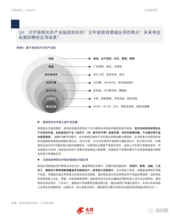 Facebook元宇宙规划不仅仅局限于社交领域,远景目标是建立一个数字虚拟新世界,公司将在游戏、社交、教育、工作等领域发力,把用户日常生活各方面囊括其中。游戏是目前普通消费者最易接受的切入口,Meta将扩大未来游戏的边界,进一步填充其平台上的VR游戏阵容。在社交方面,公司推出Horizon平台让用户自定义虚拟形象与空间,搭配Messenger功能,拓展现实与虚拟世界之间的社交联结。元宇宙办公程序将推动虚拟世界办公的高效发展,公司将推出基于Quest设备的QuestforBusiness工作功能,包括使用工作账户登录Quest2,并为企业提供账户管理、IDP、SSO集成、移动设备管理等。元宇宙的到来将重塑未来的教育方式公司拟建立1.5亿美元教育专项开发基金,建立完整的学习生态系统,为用户提供沉浸式的教育体验。