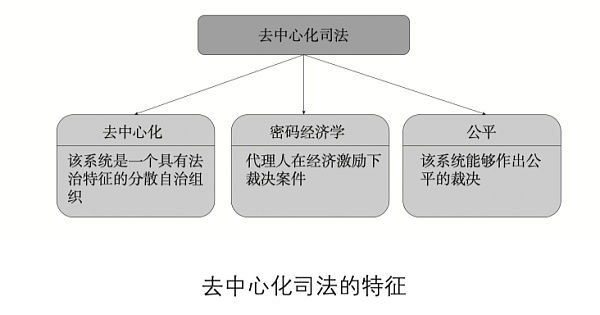 这些特征的结合赋予了去中心化司法的关键特征:公民平等、具有可预测性和社区公共治理。这构成了评估一个纠纷解决机制是否符合去中心化司法要求的第一个考察要点,具体包括以下几个方面: