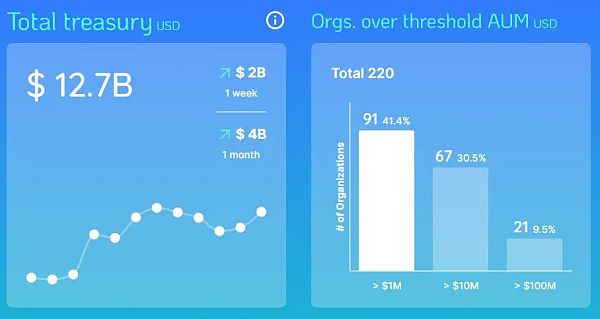 4月初,DAO资金已达到近130亿美元,环比增加40亿美元。虽然我们还没有看到大量的收购,但过去几个月的两个例子预示着,随着DAO领域的价值达到前所未有的水平,将会出现一些尝试。
