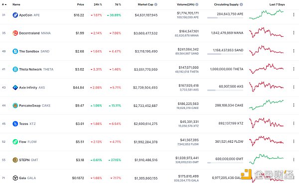 NFT总市值、市值排名前十项目 数据来源:Coinmarketcap
