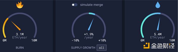 Ultrasound 模拟了 The Merge 之后,ETH 燃烧量、供给量、发行量的变化: