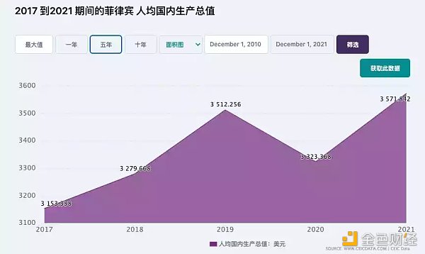 通过公开数据查询可知,菲律宾近 3 年的人均 GDP 大约是 3500 usd。