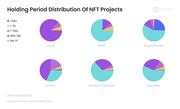 NFT项目的持有期分布统计图;数据来源:NFTGo.io