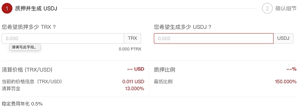 USDJ的最低抵押率为150%,稳定费率为0.5%,清算罚金为13%。