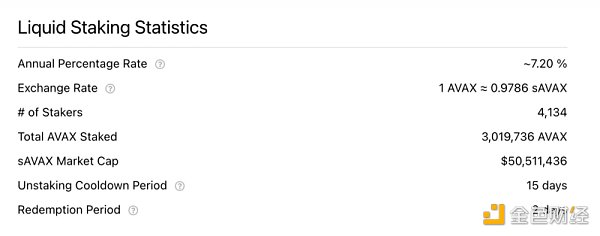 目前,通过BLS质押有大约302万AVAX,折合约5343万美元。BLS并不提供额外的赎回渠道,需要等待15天的冷却期,或者从DEX中交易。BLS提供的质押APY约为7.2%,奖励积累到sAVAX中,sAVAX与AVAX的兑换比例不断升高,协议收取验证者奖励的10%。