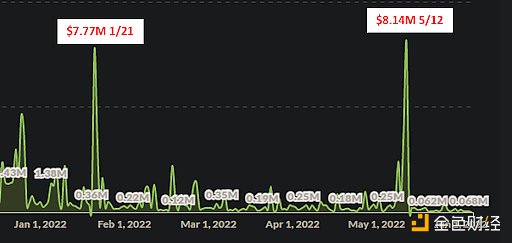 MEV 在熊市和牛市中都可以盈利,因为交易策略的设计空间广阔且相对未开发。鉴于当前的市场动态,激励参与者继续设计新的和创新的长尾策略以提取价值。根据 Flashbots 的说法,在过去 30 天里,仅在以太坊上就已经提取了价值 2000 万美元的 MEV。即使 Terra 生态系统崩溃并且整个加密市场陷入低迷,我们看到 2022 年全年每日提取 MEV 的最高(如果不是最高)毛利润之一发生在 2022 年 5 月 12 日: